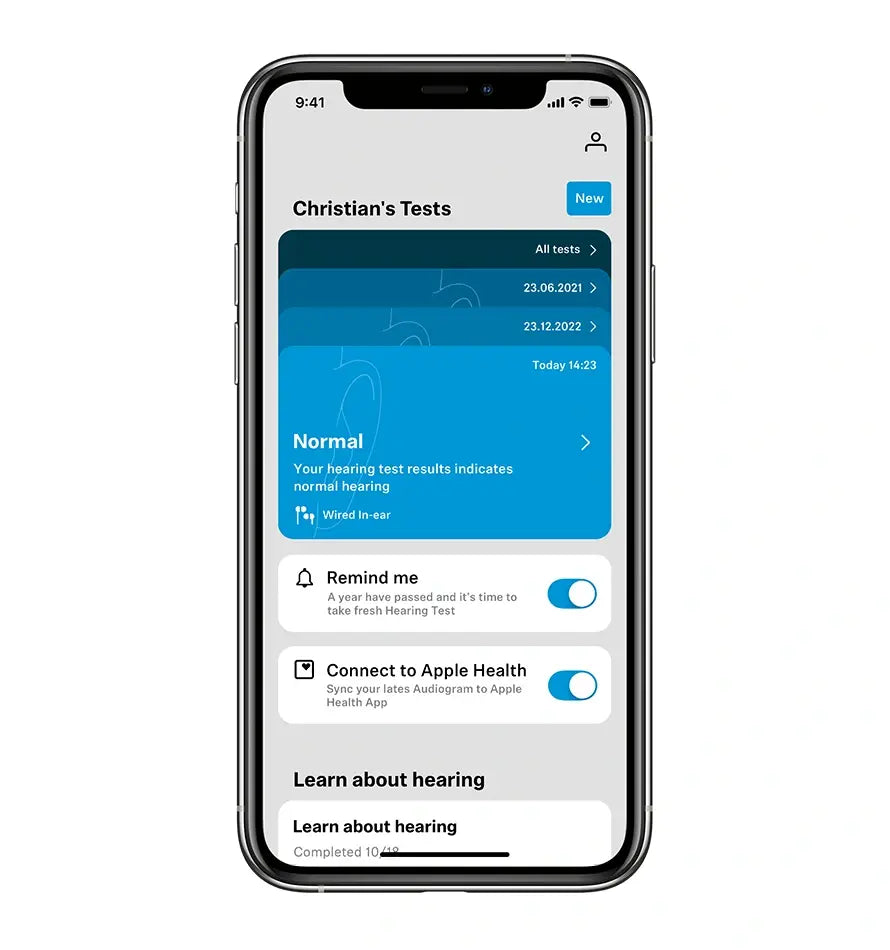 كما يتيح حساب Sennheiser الوصول إلى ميزات إضافية مثل التذكيرات بإجراء اختبار آخر، والقدرة على مزامنة مخطط السمع مع تطبيق Apple Health: مما يمنح مستخدمي iOS نظرة شاملة، حيث يمكنهم تتبع صحة سمعهم في مكان واحد جنبًا إلى جنب مع مؤشرات الرفاهية الأخرى.