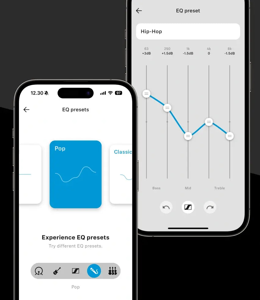 الصوت الذي تفضله على بعد نقرة واحدة فقط. اضبط الصوت بسرعة باستخدام معادل الصوت (EQ) سهل الاستخدام والإعدادات المسبقة التي تتناسب مع أسلوبك في الاستماع.