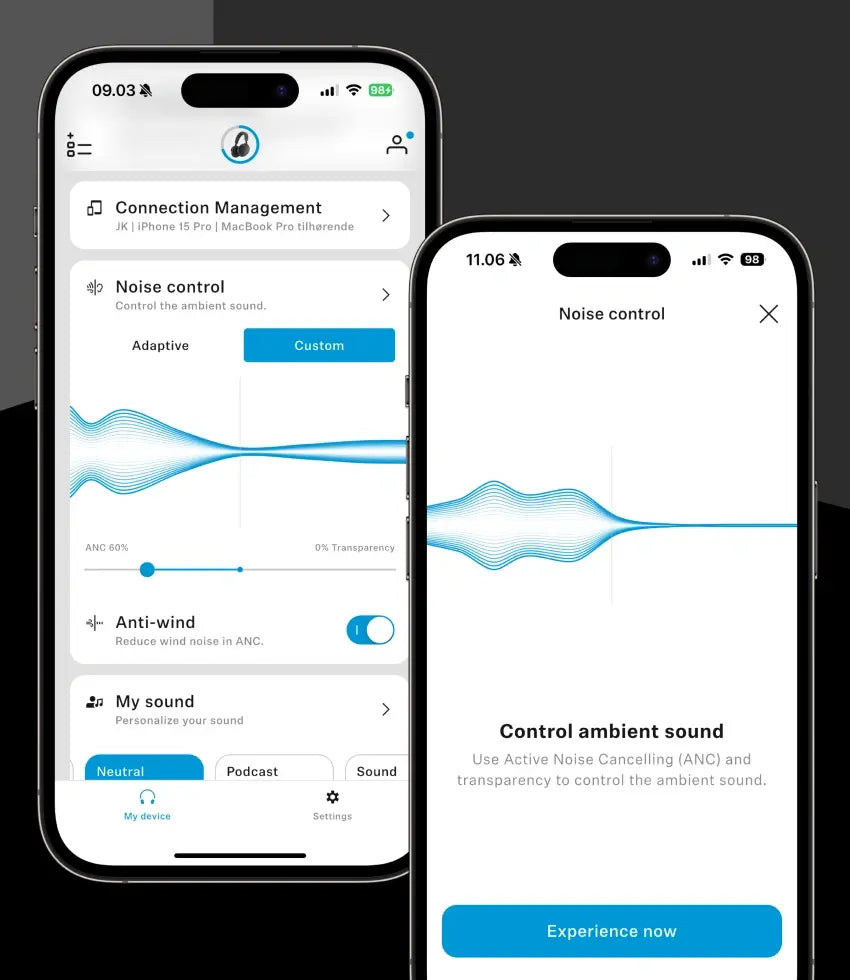 نقدم لكم تطبيقنا الجديد «Smart Control Plus»: الذي تم تصميمه بمظهر جديد وعصري وحركات رسومية سلسة تجعل التحكم في الصوت سلسًا تمامًا مثل أغنيتك المفضلة. وقد صُمم هذا التطبيق خصيصًا لأحدث جيل من سماعات Sennheiser اللاسلكية*، ليوفر أوقات استجابة سريعة وأزرار تحكم مبسطة. هذه هي التجربة السهلة التي يستحقها صوتك.